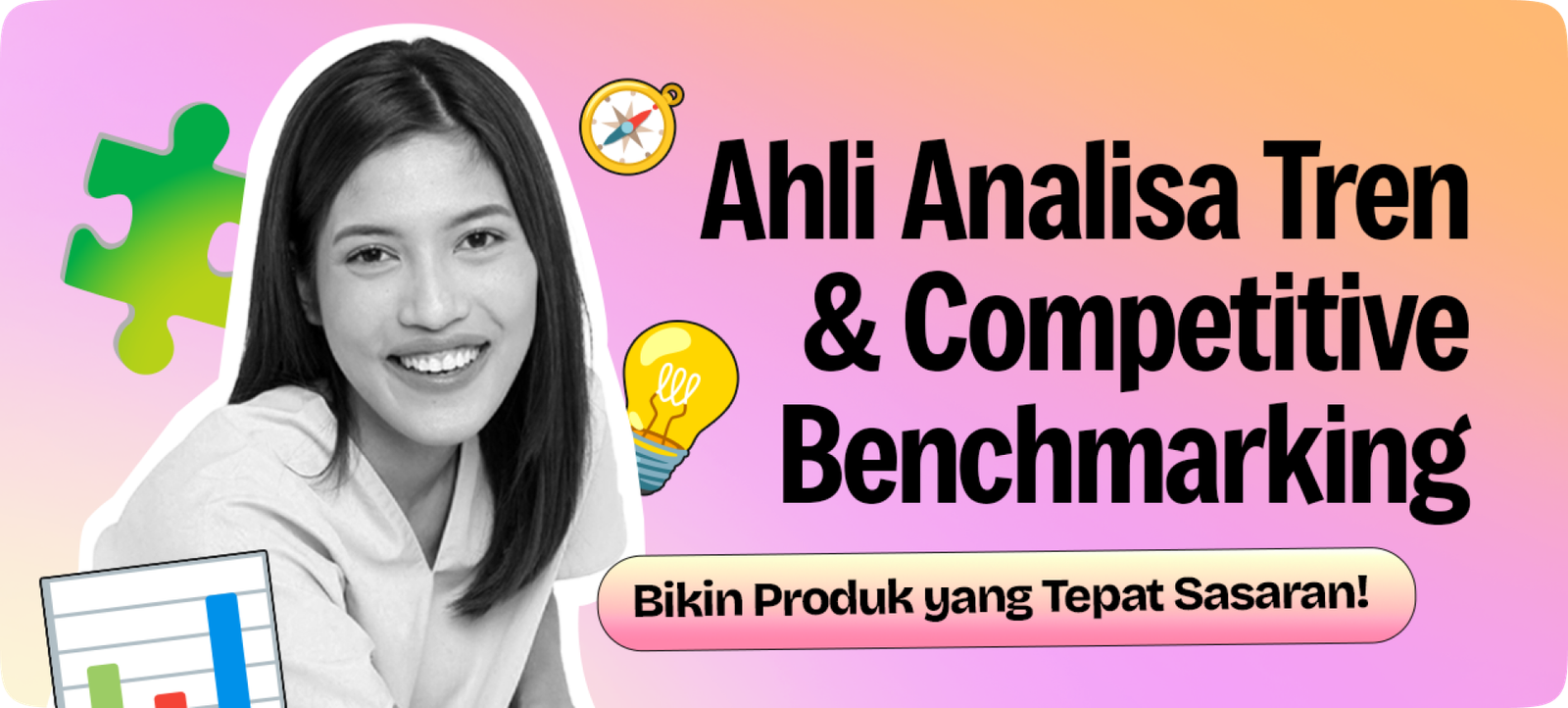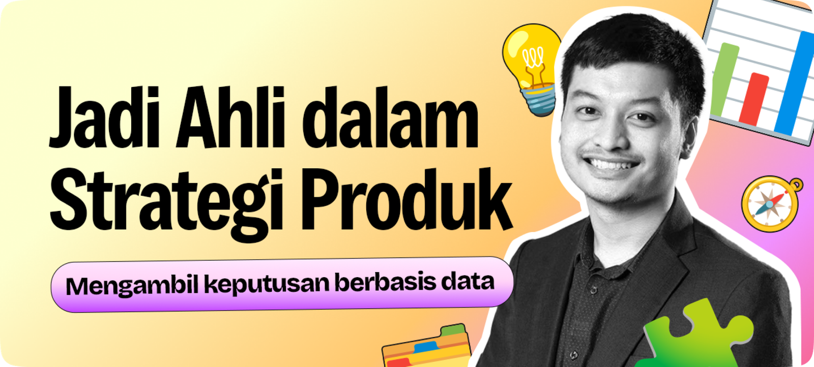 Mulai langkahmu jadi Product Manager yang siap menangani produk digital maupun non-digital di berbagai industri, dari IT hingga retail dan consumer goods. Di kursus ini, kamu bakal belajar bagaimana sebuah produk bisa sukses dan bertahan di pasar yang kompetitif lewat riset, strategi, dan eksekusi yang tepat. Setiap modul dirancang supaya kamu bisa langsung praktik dan membangun portofolio profesional.